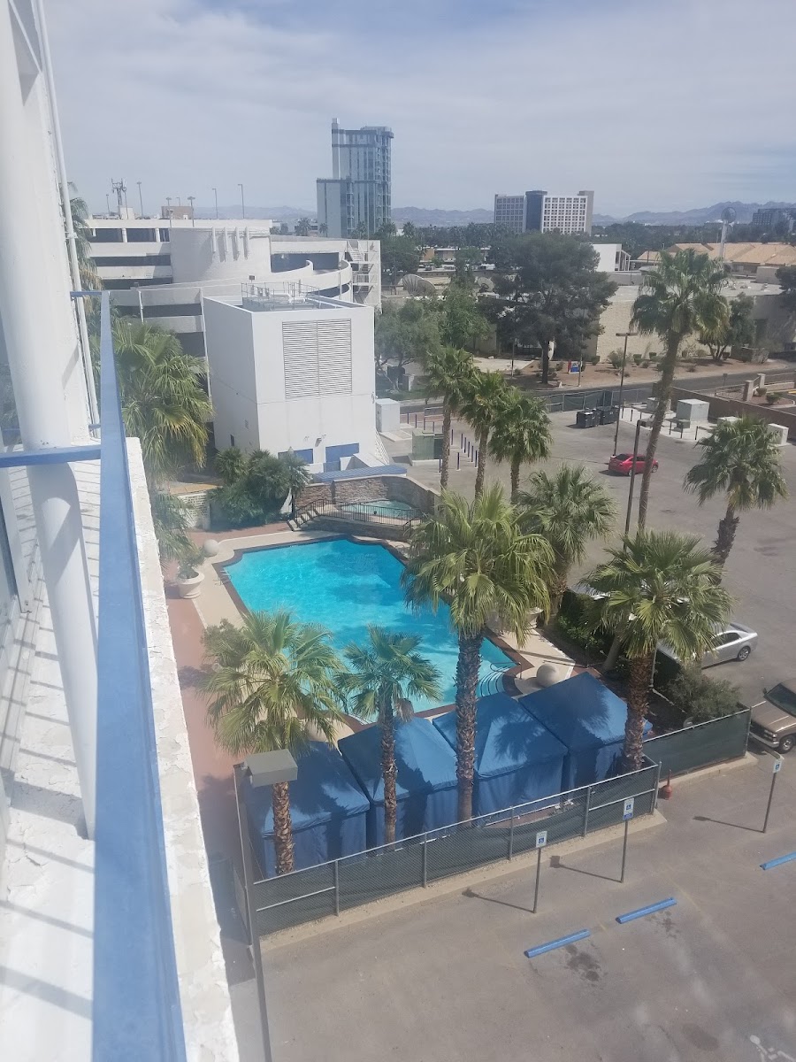 My son and I really enjoyed our stay here. Staff was top of the line with customer service and was extremely helpful and delightful the whole time. Although the room was a little small it was perfect for the 2 of us, the beds were extremely comfortable and big, lots of big comfy pillows on both beds and extra blankets, sheets, and towels, pool was nice and the hot tub felt wonderful, whole place was very clean. I would absolutely recommend this place for any visitors. He location is right off the strip and nearby great casinos and stores and restaurants.